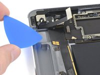 Slide an opening pick about 0.5 inches (13 mm) under the top of the logic board's left side to cut through the adhesive.