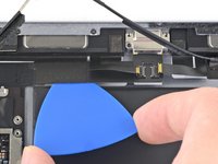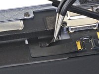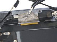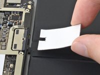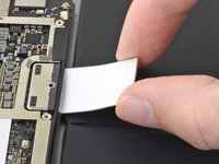 Use a pair of tweezers to detach the large right antenna sticker between the logic board and the antenna.
