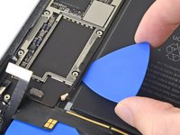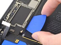 Use an opening pick to cut through the adhesive under the right ribbon cable next to the lower speaker (Lightning port oriented up) and detach it from the frame.