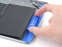 This extensive procedure requires you to remove the logic board in order to free the battery for removal.