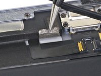 Use a Phillips screwdriver to remove the three 1.3 mm Phillips screws securing the display cable bracket.