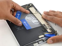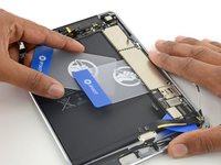 Slide the plastic card under the logic board, toward the top of the iPad, near the cameras.