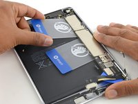 Insert a second opening pick alongside the first and slide the pick down along the edge of the iPad, releasing the adhesive as you go.