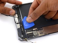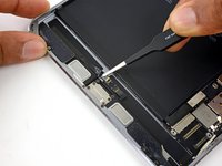 Continue to slide the pick under the Lightning port cable until you reach the end of the logic board.