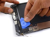 Run the pointed end of a spudger between the looped tape and the plastic cellular antenna housing to make it easier to peel the tape up.