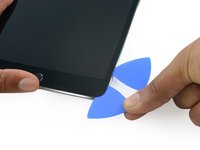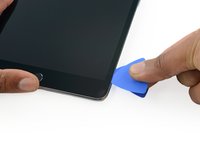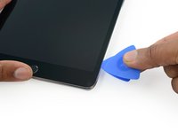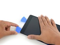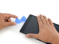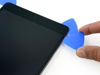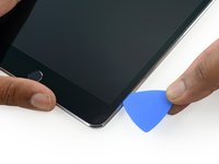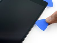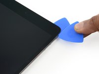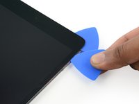 Slide the opening pick around the top left corner of the iPad to separate the adhesive.