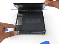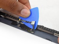 Insert a second opening pick alongside the first and slide the pick down along the edge of the iPad, releasing the adhesive as you go.