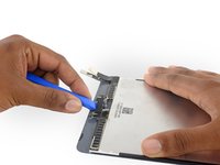 Insert a final opening pick at the lower left corner of the iPad, directly below the existing one.