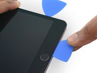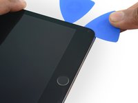 Continue sliding the pick at the lower left edge of the display toward the center of the iPad, until it is roughly half an inch from the home button.