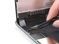 Slide the opening pick around the top left corner of the iPad to separate the adhesive.