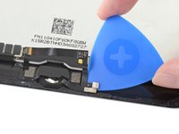Insert a second opening pick alongside the first and slide the pick down along the edge of the iPad, releasing the adhesive as you go.