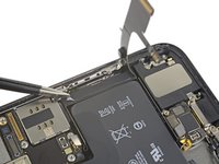 Gently lift the Lightning flex cable and bend it slightly toward the bottom edge of the iPhone for better access to the battery underneath.