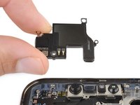 • The flood illuminator, previously a part of the display—and a necessary component of Face ID—has been integrated into this new dual-purpose module.