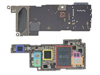 • Apple APL1W07 A15 Bionic SoC layered with what's most likely 6 GB of SK Hynix LPDDR4X SDRAM
