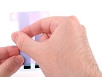Carefully align the exposed edge of the adhesive strip with the corresponding edge of the iPhone's frame.