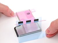 Lay the adhesive onto the battery and press each strip firmly into place.