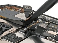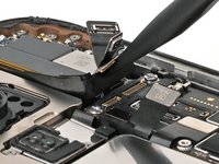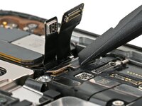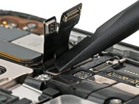 Use your finger or a spudger to connect the earpiece speaker and 5G mmWave antenna (US models only) press connectors, located on the top right corner of the logic board.