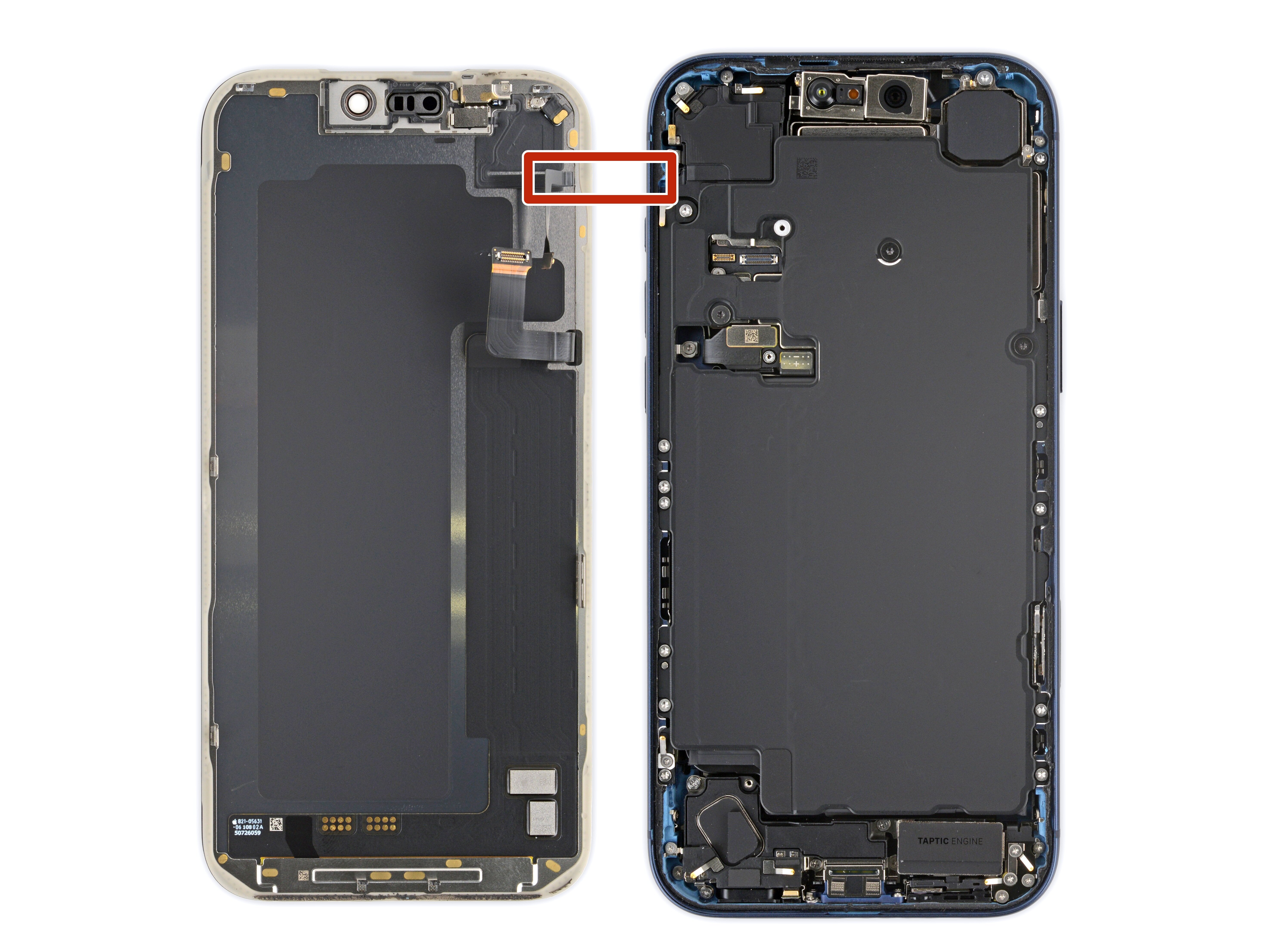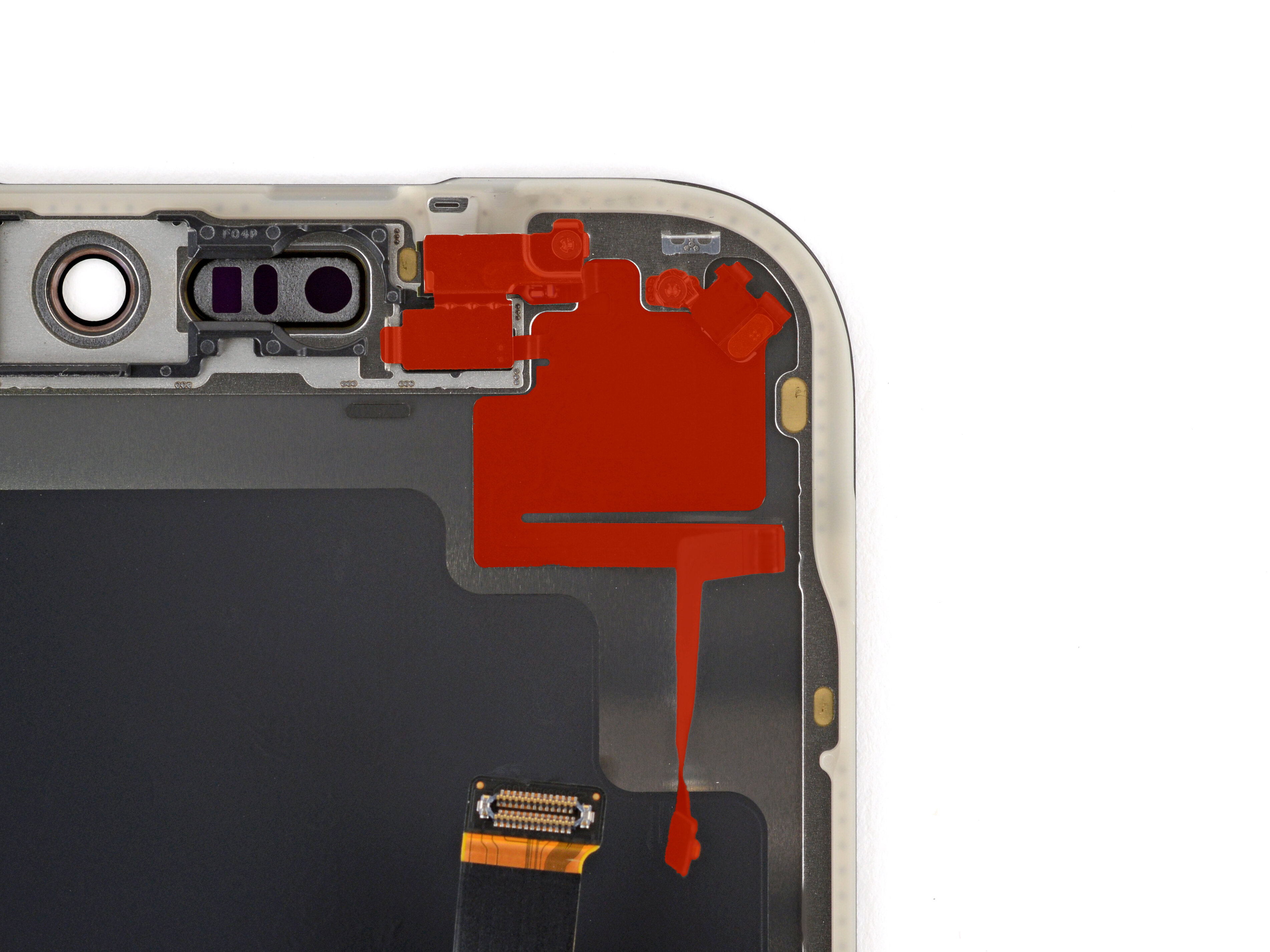 The screen and ambient light sensor cables are located near the volume and Action buttons.