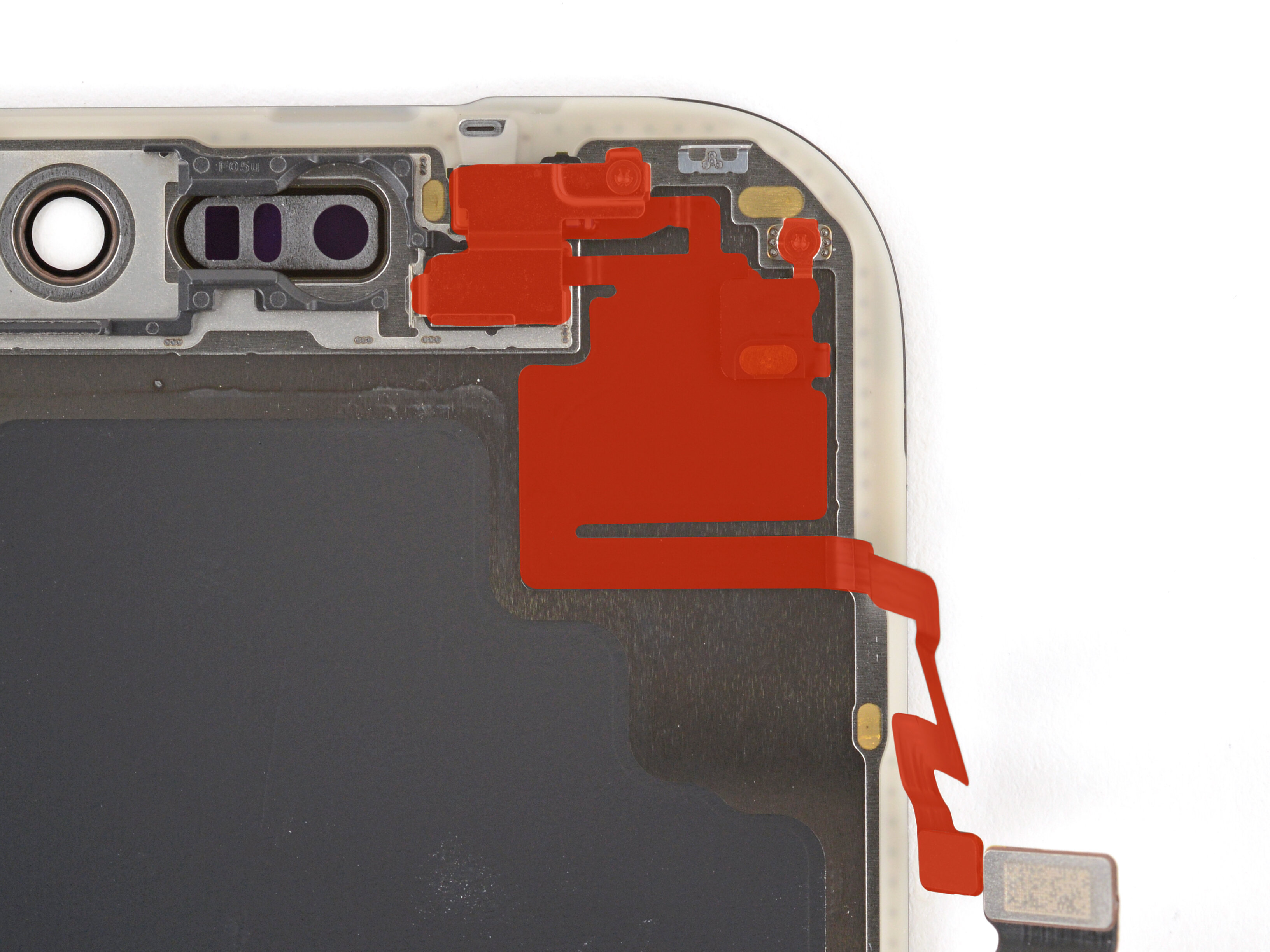 The screen and ambient light sensor cables are located near the volume and Action buttons.