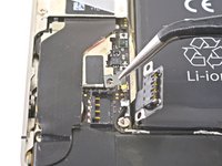 Carefully grasp the grounding clip and remove it from the iPhone.
