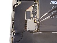 Use the edge of a plastic opening tool to pry the cellular antenna cable up from its socket on the logic board.