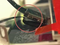 During reassembly, do not touch the metallic area at the base of the LCD data cable, as this can cause problems with the LCD. If you do touch it accidentally, clean it gently with an alcohol wipe before continuing.