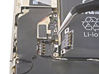 Carefully lift the logic board from the end closest to the speaker enclosure and slide it away from the top edge of the iPhone.