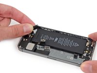 Slowly pull one of the battery adhesive strips away from the battery, toward the bottom of the iPhone.