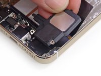 Alas, our first peek at the internal layout of the 5s. Comparing it to the iPhone 5, we spot very few differences, the main one being the lack of a battery removal pull-tab.