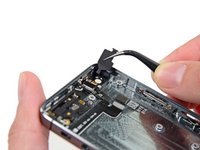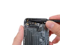 Insert the tip of a spudger into the hole in the battery adhesive tab near the headphone jack.