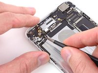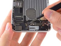 Use a pair of tweezers to peel the single adhesive tab that resides on top of both the power button and audio control/rocker switch cable connectors.