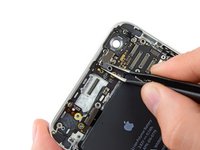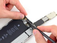Grasp the 5GHz Wi-Fi antenna bracket with a pair of tweezers and lift it off the iPhone.