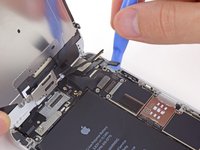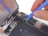 Pry the charge port connector cable up from its socket on the logic board with the flat end of a spudger.