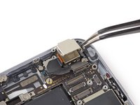 Use the flat end of a spudger to lift the rear-facing camera connector up off of its socket on the logic board.