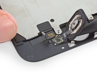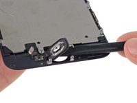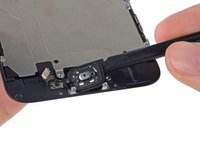 Peel the home button the rest of the way off of the display by prying gently with a spudger.