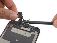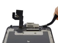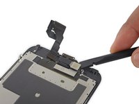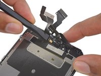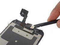 Holding the front-facing camera out of the way, use the point of a spudger to push the ambient-light sensor up out of its recess in the front panel.