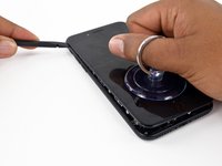 Pull up on the suction cup to create a small gap between the display assembly and the rear case.