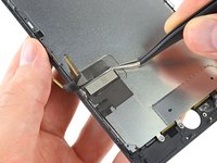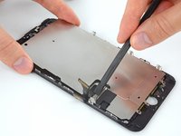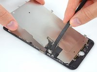 Lift the LCD shield plate while pressing down on the flex cable it surrounds.