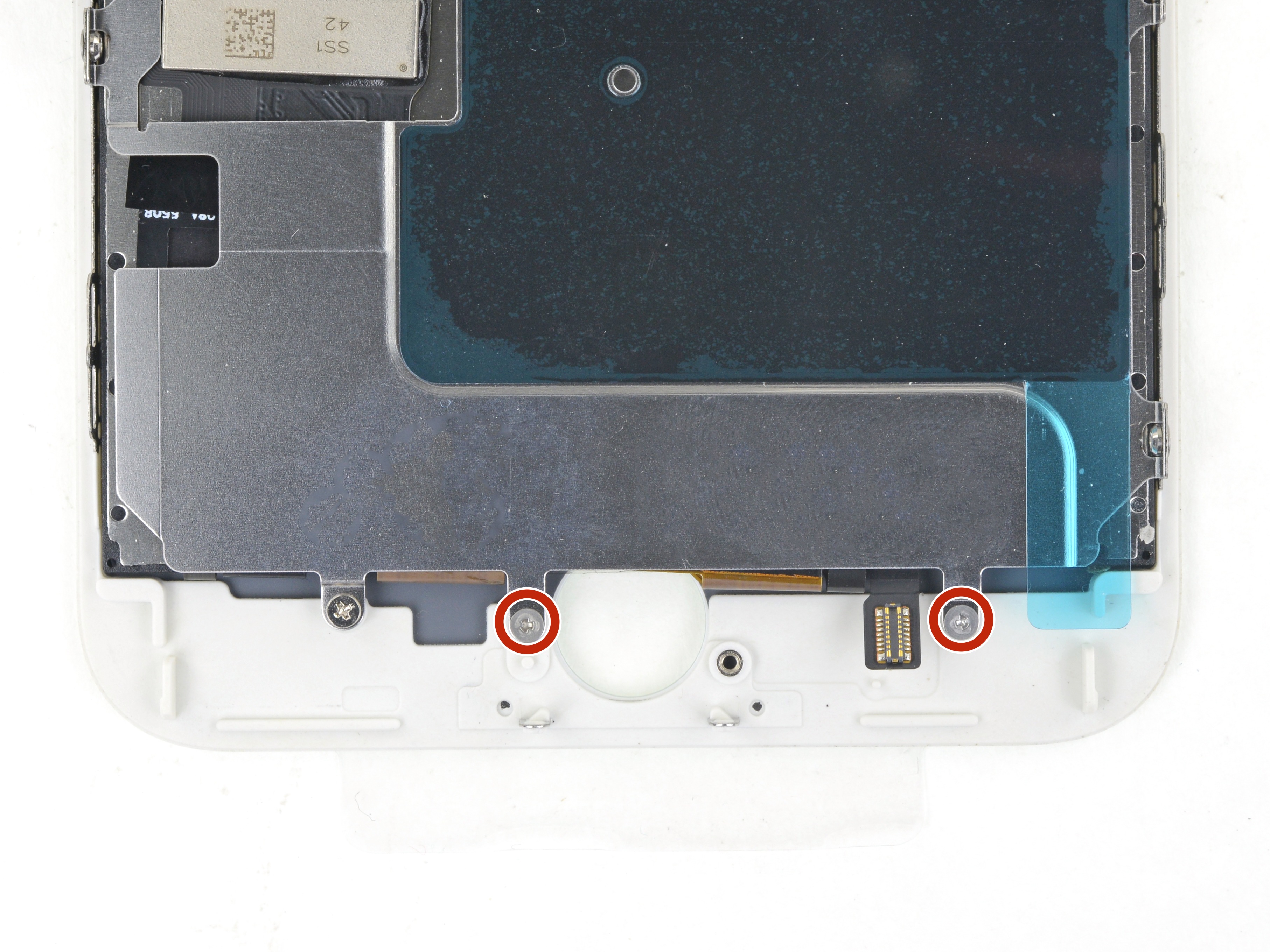 Remove the four Y000 screws securing the bracket over the home/Touch ID sensor: