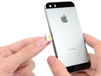 Insert a SIM card eject tool or a paperclip into the small hole in the SIM card tray.