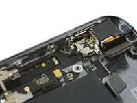 Once the connector has been released, pull the home button end of the assembly away from the rear case, using the top of the phone as a hinge.