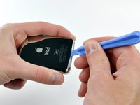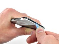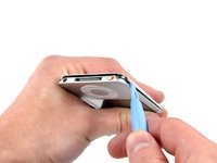 Insert the large iPod opening tool into the seam between the front case and rear panel of the iPod, above the dock connector. The tool's edge should point toward the rear panel to prevent any accidental scratching of the anodized aluminum front case.