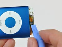 While holding the light colored socket down with one finger, use the tip of a spudger to flip the ZIF cable lock up toward the bottom of the Nano.