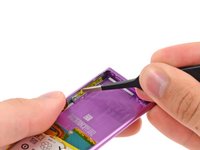 Pull up on the battery pull tab to free the battery from its adhesive.