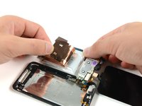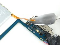 Use an iPod opening tool to gently lift the edge of the headphone jack nearest the battery out of its recess.