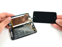 Carefully pull the top of the front panel assembly away from the adhesive holding it to the Touch, minding the short digitizer cable connecting the two components.