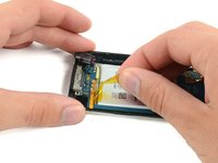 Use an iPod opening tool to slightly lift the edge of the logic board next to the battery enough to grab it with your other hand.