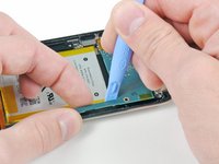 Use an iPod opening tool to slightly lift the edge of the logic board next to the battery enough to grab it with your other hand.