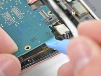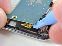 While gently lifting the logic board with one hand, use an iPod opening tool to lift the logic board near the copper tape at the logic board's top edge.
