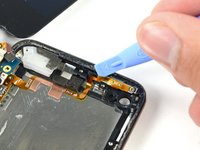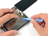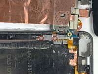 Use the edge of a plastic opening tool to peel the piece of copper tape covering the volume/power button assembly.